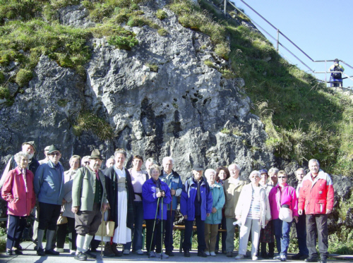 Gemeinsam unterwegs Bad Reichenhall. Zu einem weiteren gemeinsamen Ausflug trafen sich kürzlich Mitglieder der Reichenhaller Ortskameradschaft des Kameradenkreises der Gebirgstruppe und der Truppenkameradschaft des ehemaligen Gebirgsartilleriebataillons 235. Ziel der Fahrt war diesmal zunächst der Wendelstein (siehe Foto). Mit der Zahnradbahn ging es hinauf zum Gipfel, wo die Teilnehmer der Tagesfahrt die Gelegenheit nutzten, den interessanten geologischen Gipfelrundweg zu durchwandern oder einfach die herrliche Aussicht in die Alpenwelt zu genießen. Doch auch ein kulturelles Programm hatte der Vorsitzende der Ortskameradschaft, Manfred Held, mit dem Besuch der Wallfahrtskirche Birkenstein in Fischbachau mit in die Fahrt eingebaut. Den Abschluss und Ausklang des Ausfluges, der bei den Mitreisenden auf ein überaus positives Echo stieß, bildete ein Besuch des Spitzingsees. Übereinstimmend äußerten Held und der Vorsitzende der Truppenkameradschaft, Georg Winkler, den Wunsch, auch in Zukunft wieder gemeinsame Aktivitäten zu unternehmen, um das Zusammenwachsen der Traditionsvereine weiter zu fördern. hab |