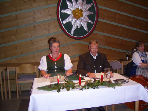 feiern gemeinsam Advent Bad Reichenhall. Zu einer gemeinsamen Adventfeier hatten kürzlich die Truppenkameradschaft des ehemaligen Gebirgsartilleriebataillons 235 und die Ortskameradschaft des Kameradenkreises der Gebirgstruppe in das Standortoffiziersheim Bad Reichenhall eingeladen, zu der der 1. Obmann des Kameradenkreises, Manfred Held, fast 100 Gäste begrüßen konnte. In seinem Rückblick bezeichnete er zunächst 2005 als bedeutendes Gedenkjahr. Held erinnerte dabei an das Ende des zweiten Weltkrieges vor 60 Jahren und an den 12. November 1955, an dem die ersten 101 Soldaten in die Bundeswehr eingetreten sind. In diesem Zusammenhang kritisierte er, dass zum 50jährigen Jubiläum der Bundeswehr beim Großen Zapfenstreich in Berlin 2000 Polizeibeamte nötig gewesen seien, um „die geborenen Verteidiger vor verirrten Bürgern zu schützen“. Die traditionelle gemeinsame Adventfeier der beiden Soldatenverbände sei nach seiner Meinung die Initialzündung dafür gewesen, dass die Truppenkameradschaft bei der jüngsten Jahreshauptversammlung den Zusammenschluss mit der Ortskameradschaft der Gebirgstruppe beschlossen habe. So könne man sich im kommenden Frühjahr auf die Gründung einer gemeinsamen Kameradschaft freuen. Mit der Geschichte über die persönlichen Erlebnisse der Kriegsweihnacht 1944 von Ludwig Gaisreiter aus Adlstetten, der an diesem Abend selbst anwesend war, leitete der Obmann auf das adventliche Programm über. Die musikalische Gestaltung übernahmen gemeinsam die „Hebinger Musi“ und der „Rupertiwinkler Dreigsang“ mit ihren vorweihnachtlichen Weisen und Liedern. Bereits zum achten Mal führten Christine Harbke und Fritz Scheerer ( siehe Foto) mit besinnlichen und heiteren „G´schichtln und Verserln“ von bayerischen und österreichischen Mundartdichtern, wie Helmut Zöpfl oder Karl Robl, durch das Programm und hatten eigens einen selbst verfassten, humorvollen Dialog mit dem Titel „Dezembergespräch“ für den Abend einstudiert. Zur guten Tradition der Adventfeier gehört auch schon seit jeher, dass bei den Klängen zum „Lied vom guten Kameraden“ an die gefallenen und verstorbenen Kameraden gedacht wird. Zum Abschluss der gelungenen und sehr eindrucksvollen Adventfeier war es dem Vorsitzenden der Truppenkameradschaft, Georg Winkler vorenthalten, sich für das vorweihnachtliche Programm, das genau die „richtige Mischung“ hatte, zu bedanken. Hab |