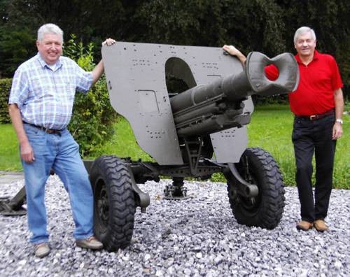 Gebirgshaubitze kehrt zurück in die militärische Heimat Bad Reichenhall. Am 22. Februar 1958 war die Geburtsstunde des Bundeswehrstandortes Bad Reichenhall. Unter Führung von Oberstleutnant Zirngiebel rückten damals als erste 200 Soldaten des Gebirgsartillerieregiments 8 in die Artilleriekaserne ein, die „Gründer“ des späteren Gebirgsartilleriebataillon 235, das bis zu seiner Auflösung zum 31. März 1993 hier stationiert war. Die Hauptbewaffnung dieses Bataillons war ab den frühen 60er Jahren bis 1977 die Gebirgshaubitze 105 mm, die dann in der Folgezeit immer mehr verschwand. Ein ausgemustertes Geschütz fand seine Bleibe bei der 10. Panzerdivision in Sigmaringen. Als dieses dort auseinandergebaut werden sollte weil sie im Wege stand, erinnerte sich die Divisionsführung an die ehemalige Reichenhaller Fachexpertise und bat um Unterstützung bei der Gebirgsjägerbrigade. Diese wiederum aktivierte zwei „alte“ Artilleristen der Truppenkameradschaft des ehemaligen Gebirgsartilleriebataillons, um in Sigmaringen zu helfen. So machten sich Stabsfeldwebel a. D. Georg Winkler und Oberstabsfeldwebel a. D. Hannes Burghartswieser auf den Weg ins Württembergische. Und dabei wurde die Idee geboren: „Wenn die Division das Geschütz eh nicht mehr brauchen kann, holen wir es zurück in die Heimat“. Der Vorsitzende der Kameradschaft Bad Reichenhall im Kameradenkreis der Gebirgstruppe, Manfred Held (im Bild rechts), war von der Absicht sofort angetan, was auch nicht verwunderlich ist. Schließlich war er selbst einmal Kommandeur eines Gebirgsartilleriebataillons. Als Held auch noch beim damaligen Kommandeur der Gebirgsjägerbrigade 23, General Erich Pfeffer, für das Vorhaben, diese Haubitze „In Memoriam Gebirgsartilleriebataillon 235“ am Kaserneneingang der Artilleriekaserne aufzustellen, auf offene Ohren stieß, ging die „Rückholaktion“ seinen Gang. Der ehemalige Waffenfeldwebel, Hauptfeldwebel a. D. Reinhard Schumak (im Bild links) machte das Militärrelikt witterungsbeständig und mit Unterstützung der Gebirgsjägerbrigade 23, des Bundeswehrdienstleistungszentrums und des Kasernenkommandanten, Oberstleutnant Werner Bickelmann, fand schließlich die gute alte Gebirgshaubitze seinen Platz am Kasernentor der Artilleriekaserne, direkt neben dem Gedenkstein für die im Dienst tödlich verunglückten Soldaten des ehemaligen Gebirgsartilleriebataillons 235. hab