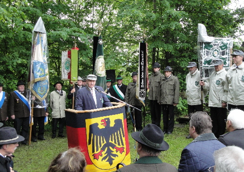 Mahnende Worte bei der Kretagedenkfeier: Der Vorsitzende der Kameradschaft Bad Reichenhall im Kameradenkreis der Gebirgstruppe, Manfred Held (am Rednerpult) sprach von einer „Verpflichtung zum Frieden für uns alle“